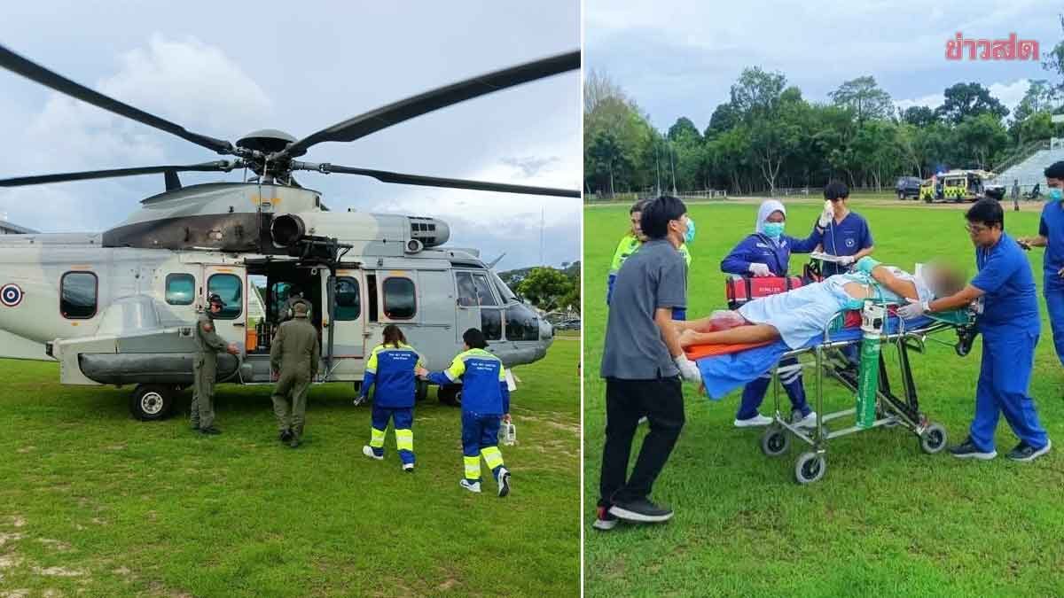 ทีมแพทย์ของกองทัพอากาศ ได้ประเมินแล้วเห็นว่า การลำเลียงผู้ป่วยทางอากาศเป็นวิธีที่รวดเร็วและปลอดภัยที่สุด จึงได้ประสานงานเพื่อนำส่งผู้ป่วยจาก กองบิน 7 (บน.7) ไปยังโรงพยาบาลกรุงเทพ-ภูเก็ต ซึ่งมีเครื่องมือและทีมแพทย์ผู้เชี่ยวชาญพร้อมให้การรักษา